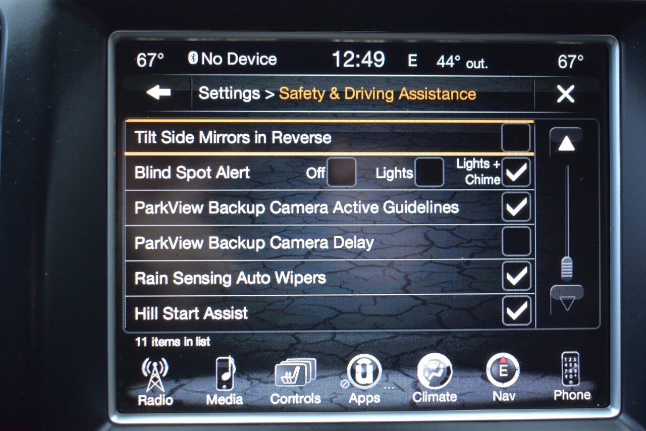 - Uconnect® infotainment system – access to audio and vehicle settings.