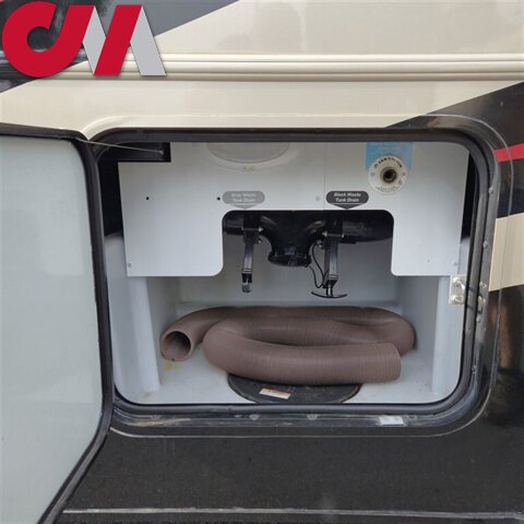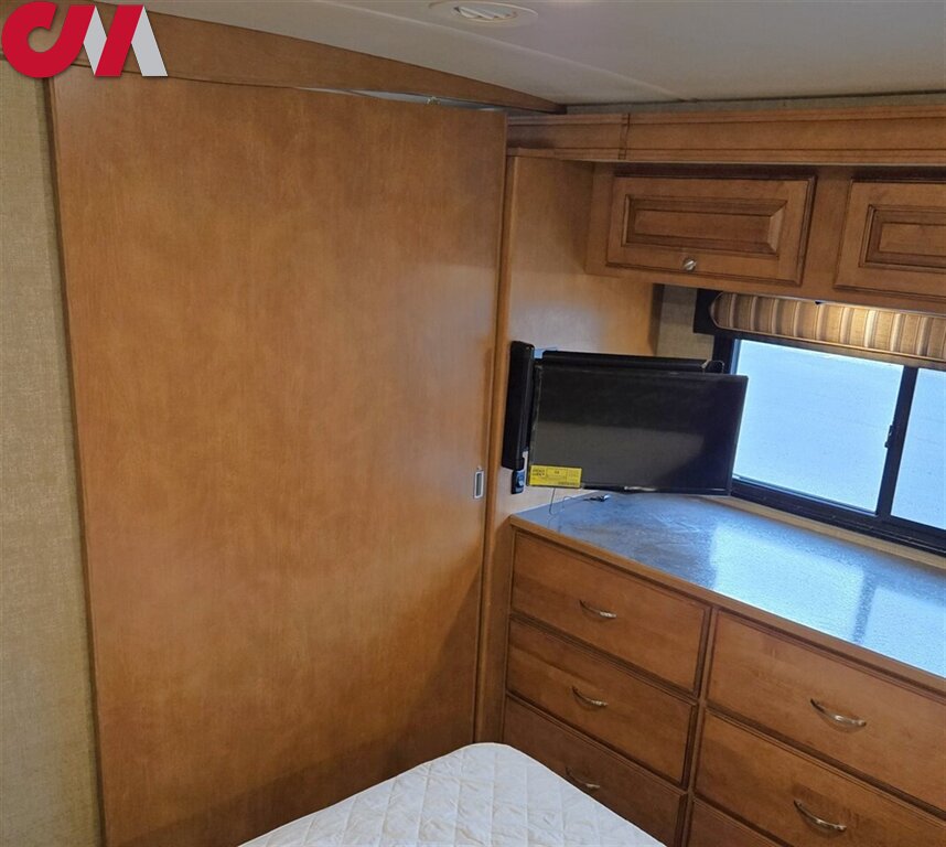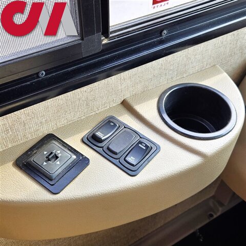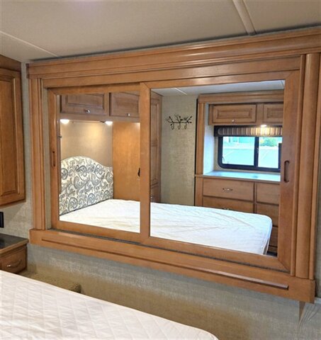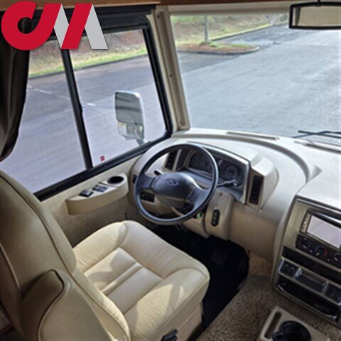 This Winnebago Vista LX class A gas coach 27N features triple slide outs for added interior space, with the passenger side being almost a complete wall slide out.