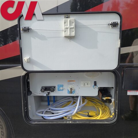 Along the outer bathroom wall is the location for a living area 48" HDTV. There is also an optional powered StudioLoft Bed that can be lowered with the push of a button for additional sleeping space. There is a location above the cab area for an optional TV to be added if you choose too.