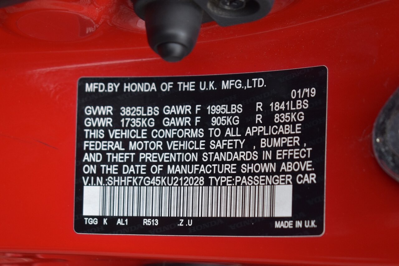 2019 Honda Civic Sport 4dr Hatchback! 6-Speed Manual! 29 City MPG! 38 Hwy MPG! Econ Drive Mode! Back Up Camera! Lane Assist! Collision Mitigation! Bluetooth Connectivity! High-Rise Rear Wing!