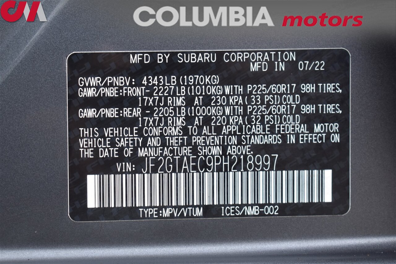 AWD 4dr Crossover CVT! EyeSight Assist Tech! X-Mode! SI-Drive! Back Up Cam! Blind Spot Monitor! Apple CarPlay! Android Auto! Heated Seats! Sunroof! Trunk Cargo Cover!